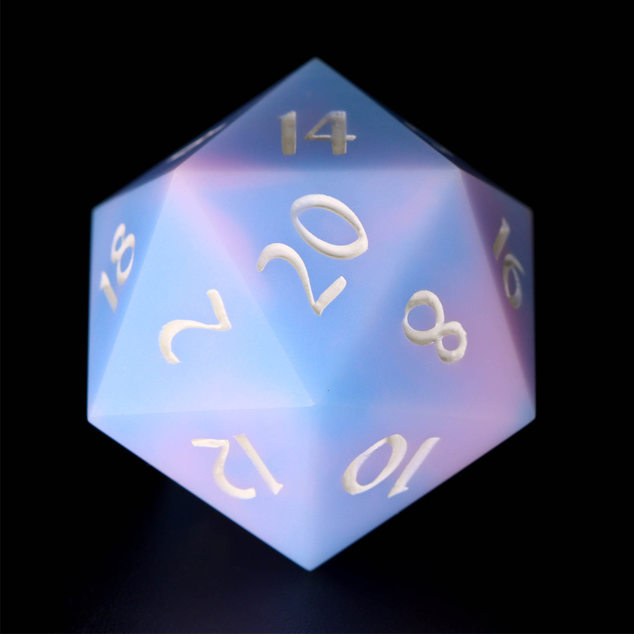 Opaque pink and blue resin blend, matte finish, inked with white paint.