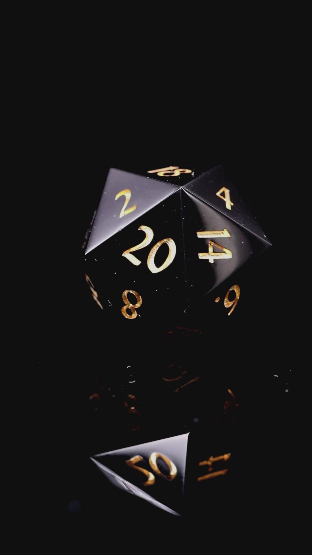 Opaque black resin, polished to high gloss, inked with liquid gold paint. This includes D20. Dice come packed in elegant gift box with KAZAD logo.