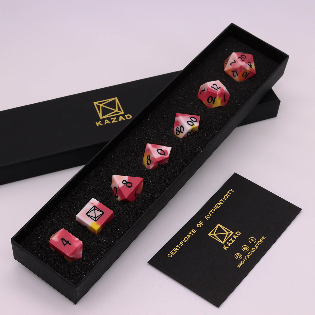 Every dice in KAZAD store is poured, sanded, polished, inked and cleaned by hand.